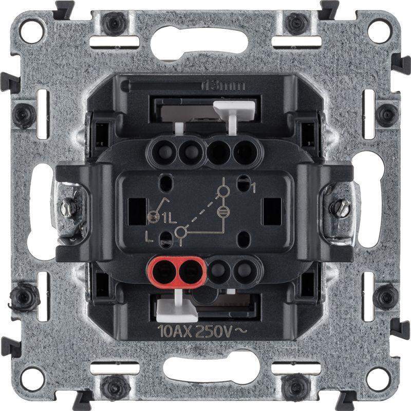 Механизм выключателя Valena Life 10АХ 250В с подсветкой; с лицевой панелью бел. Leg 752410 – электроустановочный механизм. Представляет собой одноклавишный выключатель, из пластика, с лицевой панелью белого цвета, со световой индикацией, скрытой установки, монтируемый под штукатурку.