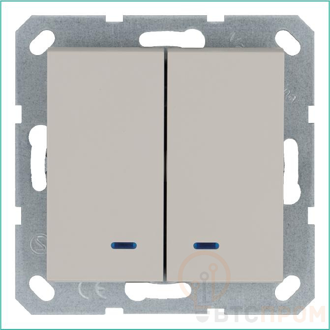 –Выключатель 2-кл. 10А IP20 с подсветкой механизм тауп Jasmart G3023NT