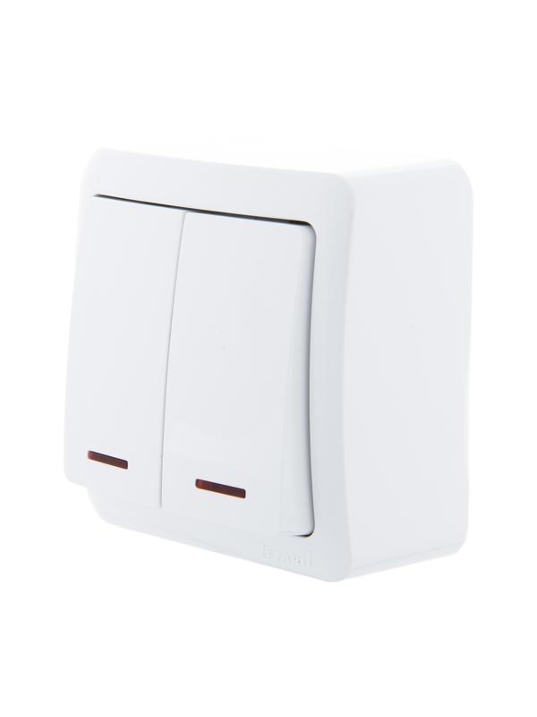 Выключатель 2-кл. 1п ОП Viola 10А IP20 с подсветкой бел. LEZARD 751-0200-112 фото в каталоге от BTSprom.by