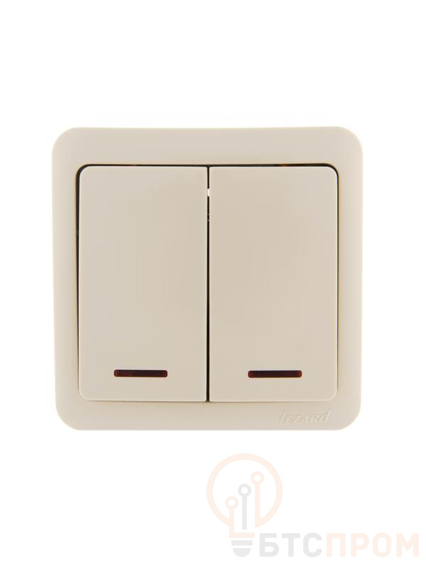 выключатель 2-кл. оп nata 10а ip20 с подсветкой крем. lezard 710-0300-112 от BTSprom.by