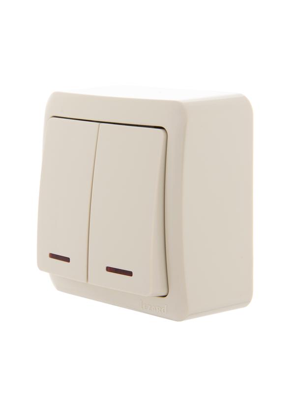 Выключатель 2-кл. ОП Nata 10А IP20 с подсветкой крем. LEZARD 710-0300-112