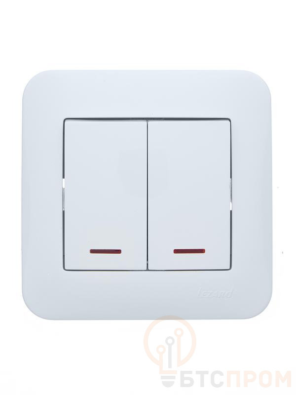 Выключатель 2-кл. 1п СП ASTI 10А IP20 с подсветкой в сборе бел. LEZARD 7081-0202-112 фото в каталоге от BTSprom.by