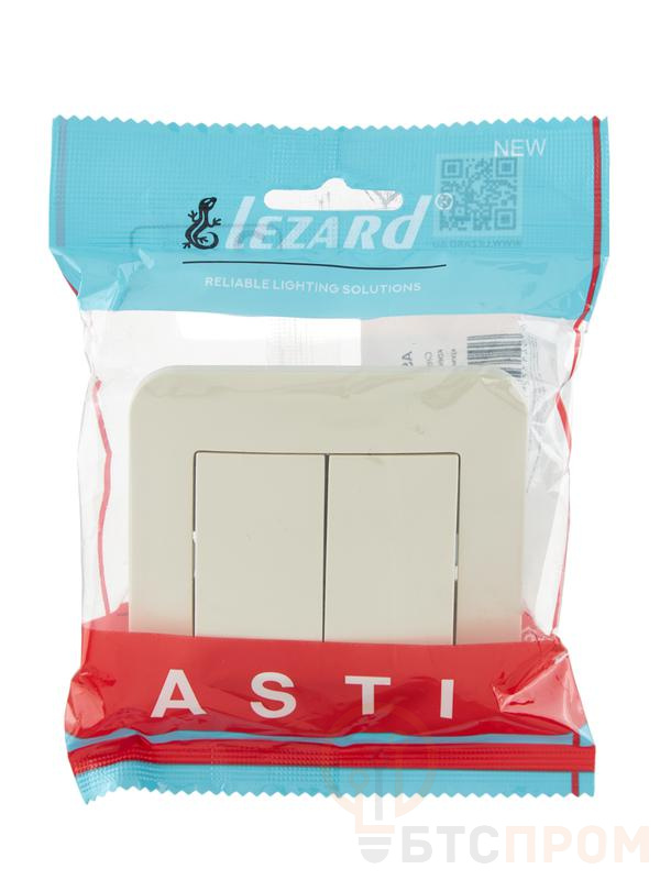 Выключатель 2-кл. 1п СП ASTI 10А IP20 в сборе крем. LEZARD 7081-0303-101 фото в каталоге от BTSprom.by