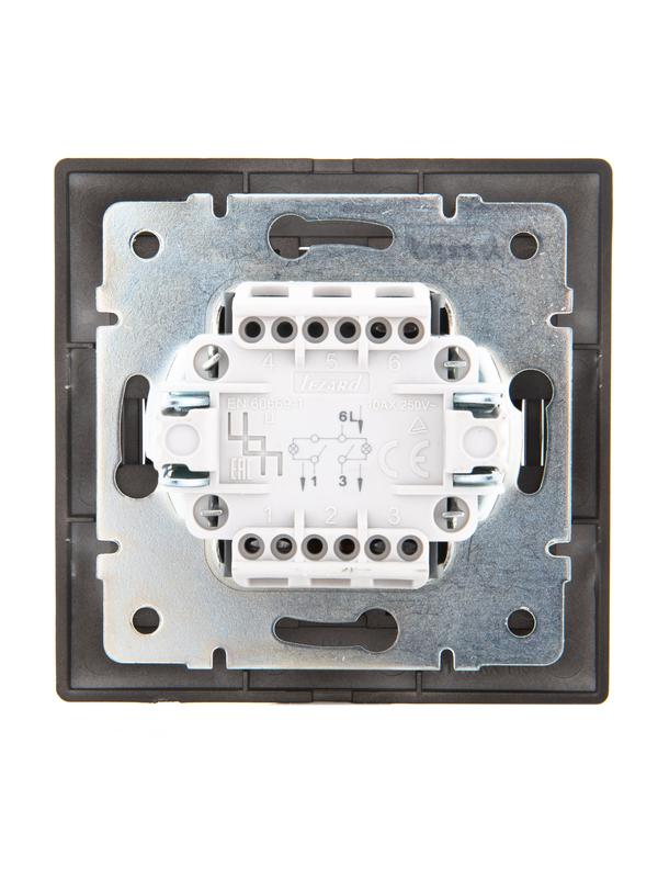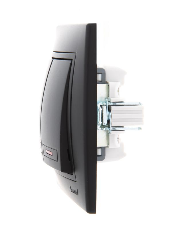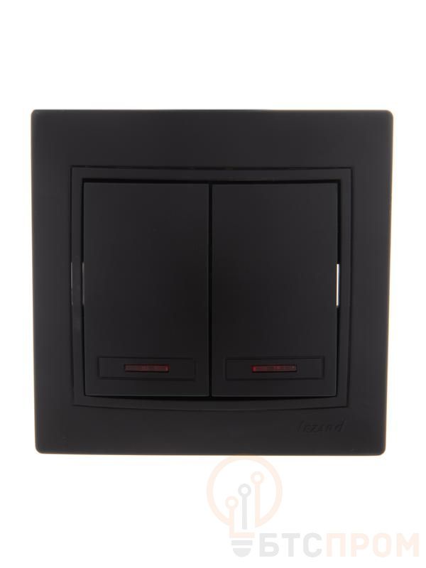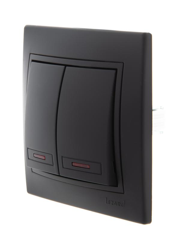 Выключатель 2-кл. 1п СП Mira 10А IP20 с подсветкой со вставкой черн. бархат LEZARD 701-4242-112 фото в каталоге от BTSprom.by