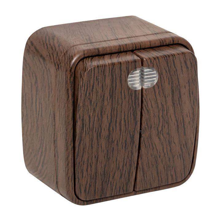 Выключатель 2-кл. 2п ОП Минск 10А IP20 с индикатором темн. дерево EKF EGV10-123-40 фото в каталоге от BTSprom.by