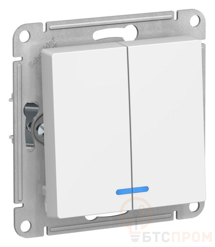 Механизм Systeme Electric (ранее Schneider Electric) серии AtlasDesign в цвете ЛОТОС выключателя 2-клавишного c подсветкой подходит для сетей 250 В, на ток 10 А. - Благодаря светодиодной подсветке синего цвета изделие легко найти в темноте. - Двухклавишный выключатель позволяет управлять двумя источниками света с одной точки. - Лицевые детали из качественного ABS-пластика, устойчивого к царапинам и УФ-излучению. - Усиленные прямые монтажные лапки для лучшей фиксации механизма в монтажной коробке.