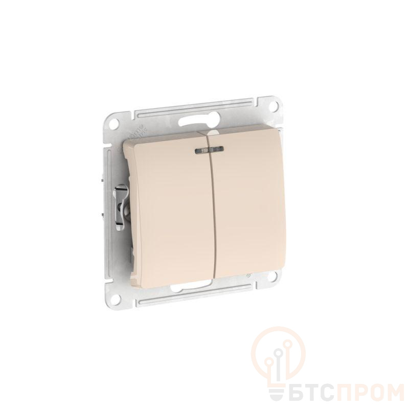 Механизм с быстрозажимными клеммами Systeme Electric (ранее Schneider Electric) серии Glossa (цвет бежевый) выключателя 2-клавишного с подсветкой подходит для сетей 250 В, на ток 10 А. С помощью новых быстрозажимных клемм монтаж розеток и выключателей стал намного быстрее. Теперь подключение не требует использования отвертки. Выполнен из материала PС+ASA, стойкого к УФ-излучению и появлению царапин.