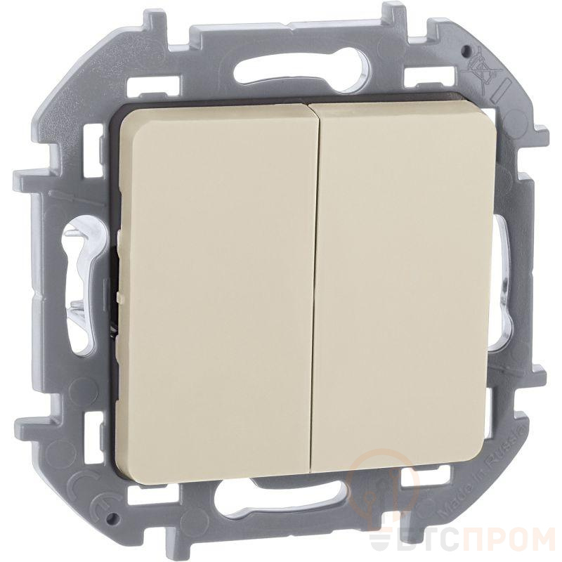 Выключатель двухклавишный скрытого монтажа Inspiria, цвет "Слоновая кость", номинальный ток 10АХ, напряжение ~250В, безвинтовые зажимы. Устанавливается в жилых и общественных помещениях для управления приборами освещения, вентиляции и т.д. Предназначен для управления двумя электрическими цепями.