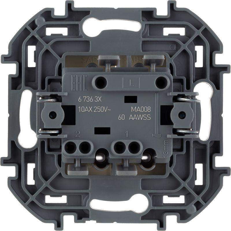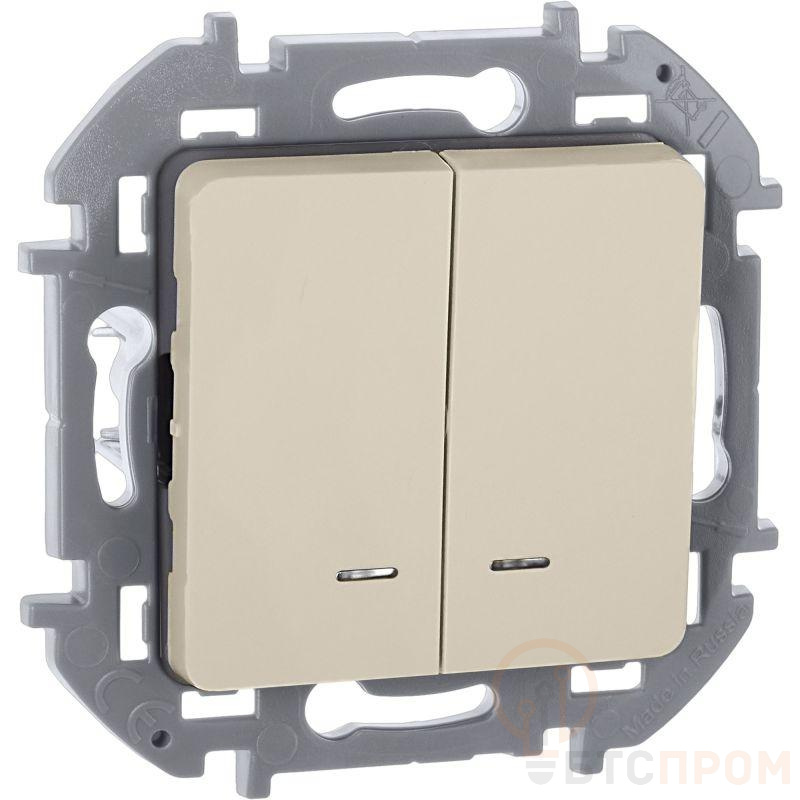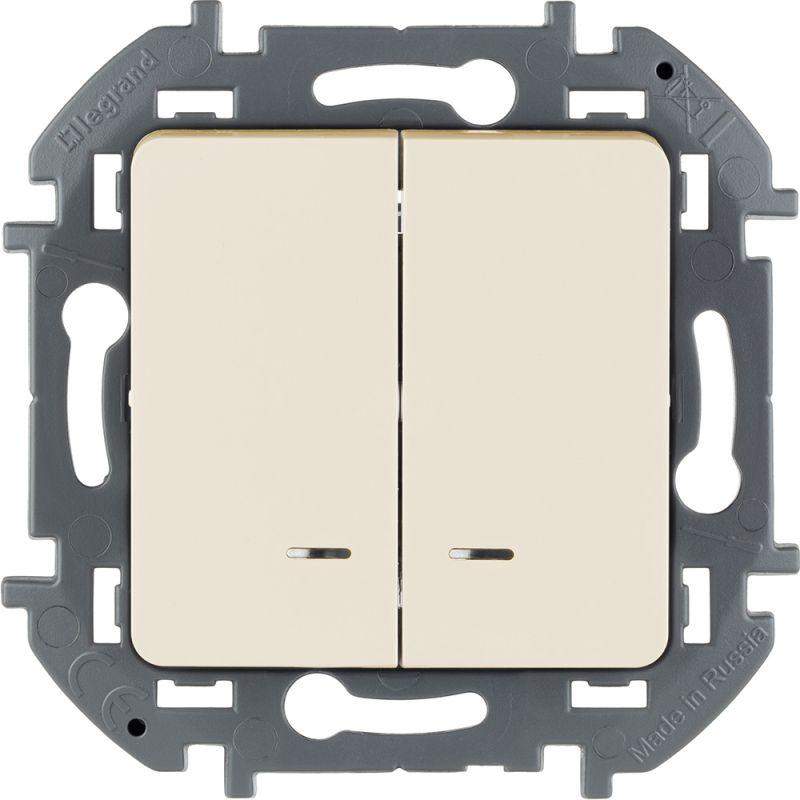 Выключатель двухклавишный с подсветкой/индикацией скрытого монтажа Inspiria, цвет "Слоновая кость", номинальный ток 10АХ, напряжение ~250В, безвинтовые зажимы. Устанавливается в жилых и общественных помещениях для управления приборами освещения, вентиляции и т.д. Предназначен для управления двумя электрическими цепями.