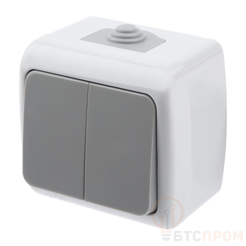<h1>Выключатель двойной, 10А-250В, IP54, ОУ, Atlantic, серый</h1>
