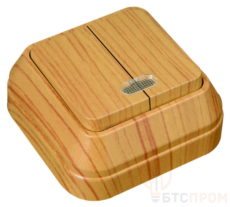 Выключатель 2-кл. ОП 10А IP20 с подсветкой дуб Makel 45323 фото в каталоге от BTSprom.by