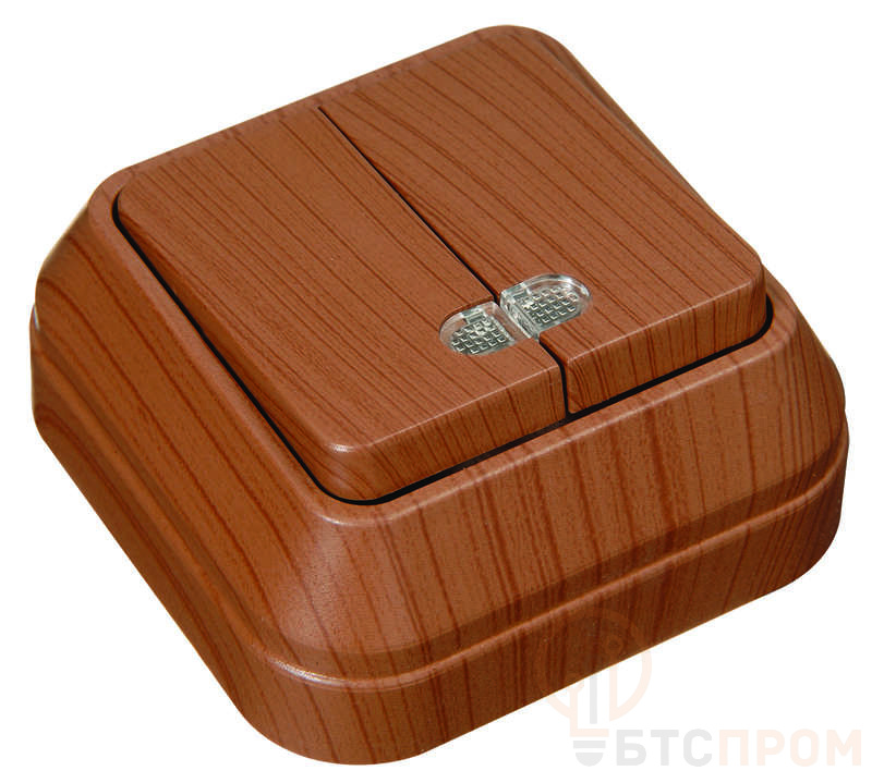 Выключатель 2-кл. ОП 10А IP20 с подсветкой орех Makel 45423 фото в каталоге от BTSprom.by