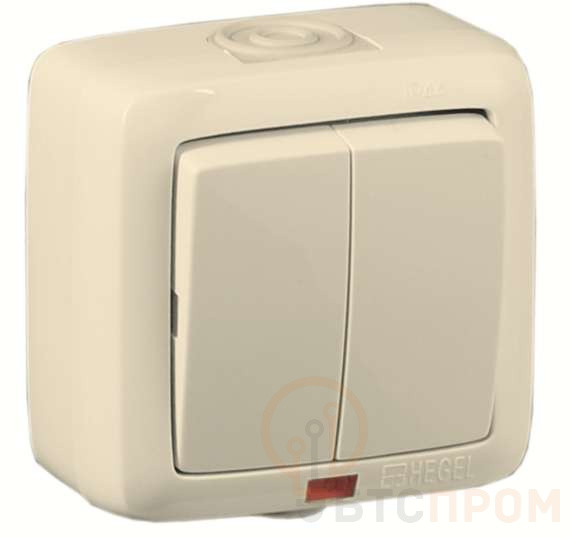 Выключатель 2-кл. ОП Альфа 10А IP44 250В с индикацией сл. кость HEGEL ВА10-252-01