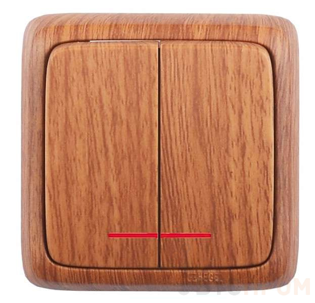 Выключатель 2-кл. ОП Альфа 16А IP20 с индикацией с изолир. пластиной дуб HEGEL ВА16-154-05 фото в каталоге от BTSprom.by