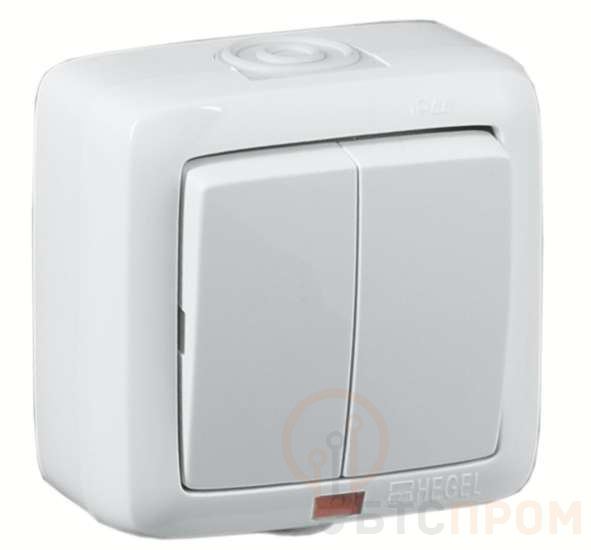 Выключатель 2-кл. ОП Альфа 16А IP44 250В с индикацией бел. HEGEL ВА16-252 фото в каталоге от BTSprom.by