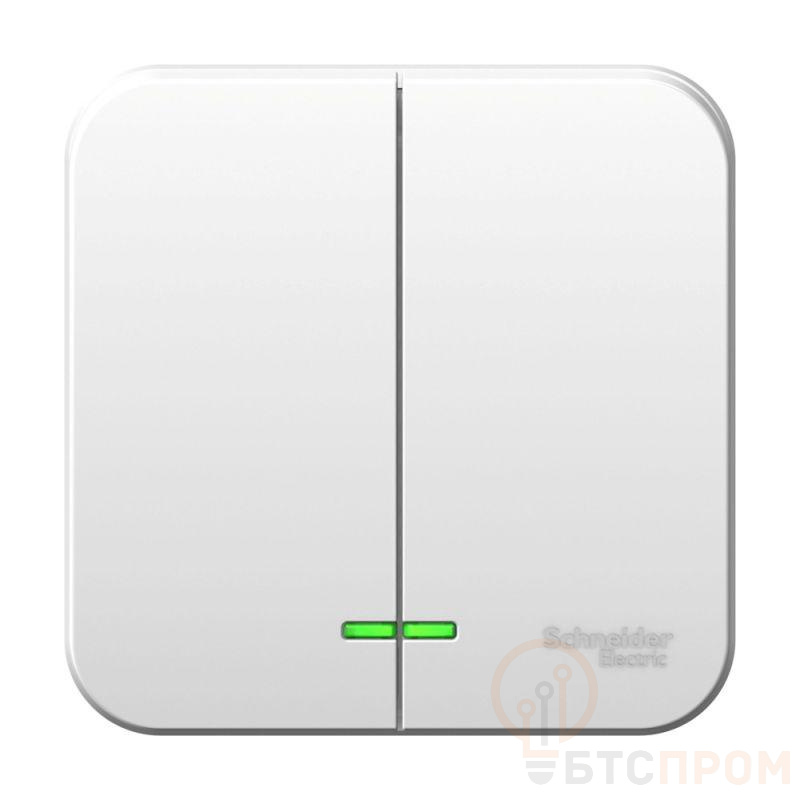 Выключатель Systeme Electric (ранее Schneider Electric) BLANCA (белый, открытой установки) с монтажной пластиной двухклавишный предназначен для сетей до 250В, на ток до 10А. Подсветка делает его легко находимым в отсутствие освещения. Двухклавишный выключатель позволяет управлять двумя источниками света из одной точки. Он изготовлен из ABS-пластика, прост в установке и удобен в применении.