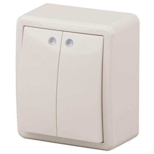 Выключатель 2-клавишный с подсветкой серии Эра Эксперт открытой установки цвет слоновая кость 11-1205-02. Номинальные характеристики 10А 250В. Выключатель выполнен из качественного поликарбоната, оснащён уникальными винтовыми клеммами ЭКСПЕРТ для максимально качественного зажима кабеля в механизме.