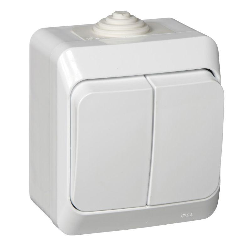 Выключатель Systeme Electric (ранее Schneider Electric) ЭТЮД (белый, открытой установки) двухклавишный предназначен для применения в сетях до 250В, на ток до 10А. Выключатель подходит для большинства типов ламп, включая люминесцентные. Две клавиши позволяют управлять двумя источниками света с одной точки. Он удобен в применении и отлично подходит для ванной комнаты (IP44). Сделано в России.