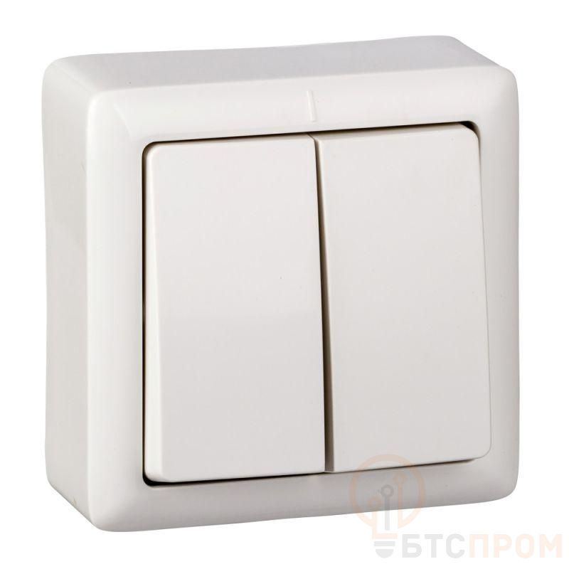 Выключатель двухклавишный Systeme Electric (ранее Schneider Electric) РОНДО (открытой установки, цвет белый) предназначен для сетей до 250 В, на ток до 6 А. Выключатель изготовлен из ABS-пластика, прост в установке, прочен и надежен в применении. Двухклавишный выключатель позволяет управлять двумя источниками света с одной точки. Сделано в России.