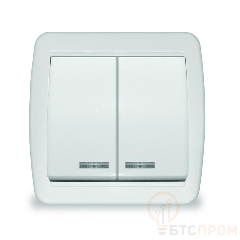 Выключатель 2-кл. ОП Клио с подсветкой 10А IP44 бел. UNIVersal К2227 фото в каталоге от BTSprom.by