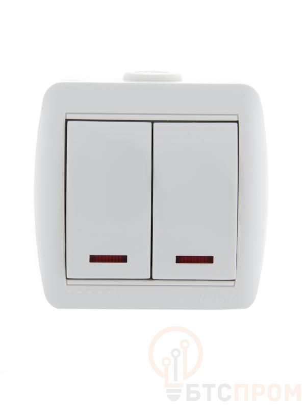 –Выключатель 2-кл. ОП Nata 10А IP20 с подсветкой бел. LEZARD 710-0200-112
