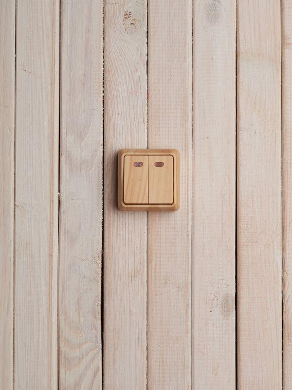 Выключатель 2-кл. ОП Frea 10А IP20 250В с индикацией АБС-пластик сосна TOKOV ELECTRIC TKE-FR-V2I-C25