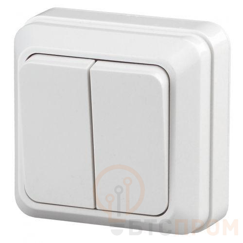 Выключатель Intro Quadro 2-104-01 двухклавишный 10А-250В, IP20, ОУ, белый