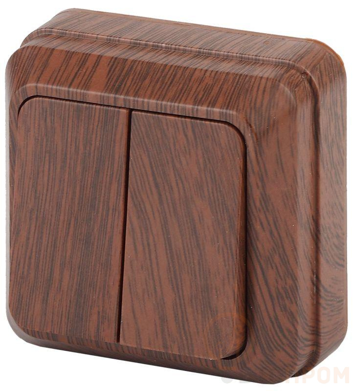 Выключатель Intro Quadro 2-104-10 двухклавишный 10А-250В, IP20, ОУ, венге