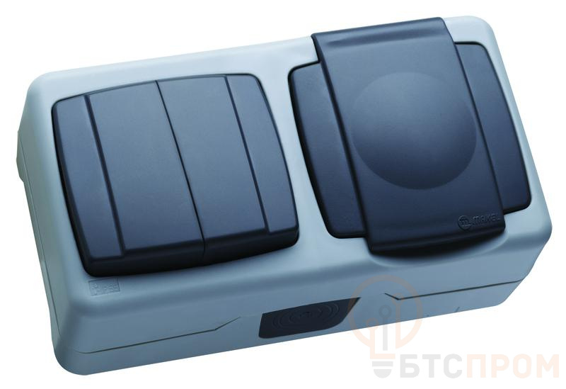 Выключатель 2-кл. + розетка IP44 с крышкой Makel 37064203 фото в каталоге от BTSprom.by