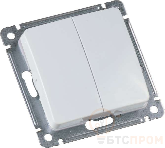Механизм выполнен в классическом белом цвете, что позволяет ему гармонично вписаться в большинство интерьеров. С его помощью можно независимо управлять двумя группами света (например, основным и декоративным освещением в комнате или раздельным освещением в санузле) из одной точки.