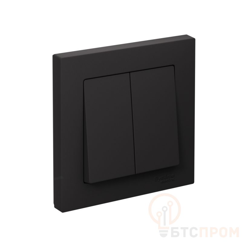 Выключатель Systeme Electric (ранее Schneider Electric) серии AtlasDesign (в сборе, цвет карбон) 2-клавишный подходит для сетей 250 В, на ток 10 А. - Двухклавишный выключатель позволяет управлять двумя источниками света с одной точки. - Лицевые детали из качественного ABS-пластика, устойчивого к царапинам и УФ-излучению. - Изделие поставляется в комплекте с рамкой того же цвета. - Благодаря покрытию «soft touch» к изделию приятно прикасаться.