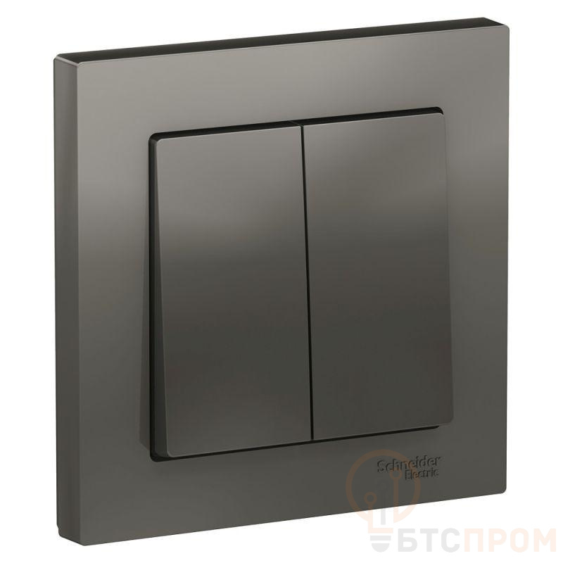 Выключатель Systeme Electric (ранее Schneider Electric) серии AtlasDesign (в сборе, цвет сталь) 2-клавишный подходит для сетей 250 В, на ток 10 А. - Двухклавишный выключатель позволяет управлять двумя источниками света с одной точки. - Лицевые детали из качественного ABS-пластика, устойчивого к царапинам и УФ-излучению. - Изделие поставляется в комплекте с рамкой того же цвета. - Усиленные прямые монтажные лапки для лучшей фиксации механизма в монтажной коробке.