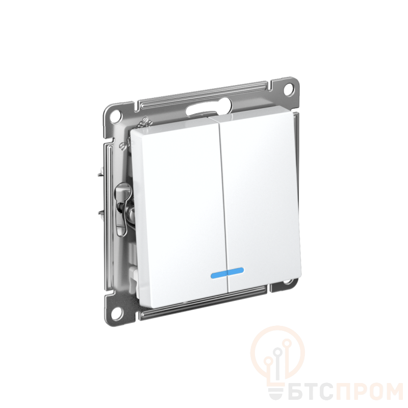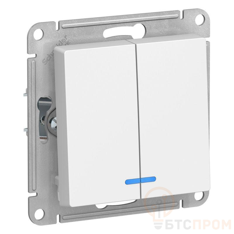 Механизм Systeme Electric (ранее Schneider Electric) серии AtlasDesign в цвете белый выключателя 2-клавишного c подсветкой подходит для сетей 250 В, на ток 10 А. - Пластик с ионами серебра в белом цвете обеспечивает антибактериальный эффект. - Благодаря светодиодной подсветке синего цвета изделие легко найти в темноте. - Двухклавишный выключатель позволяет управлять двумя источниками света с одной точки. - Лицевые детали из качественного ABS-пластика, устойчивого к царапинам и УФ-излучению.