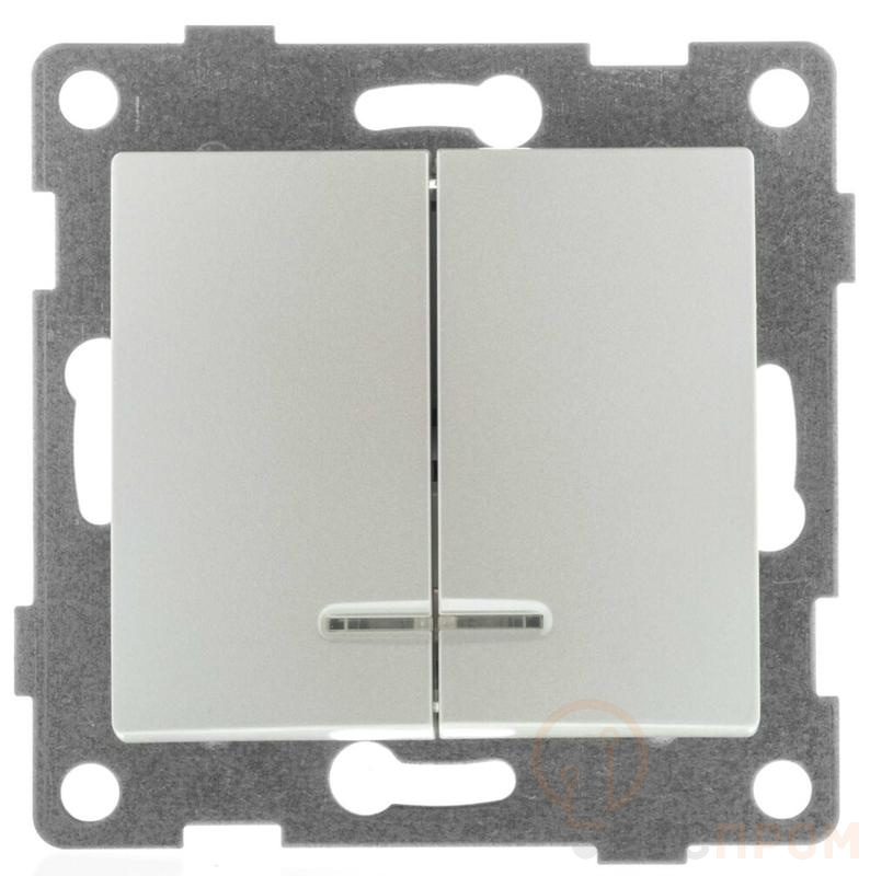 Ключевые характеристики устройства: номинальный ток 10А, напряжение 250В и степень защиты IP20, что гарантирует безопасную эксплуатацию в сухих помещениях. Механизм выполнен в жемчужном цвете, а наличие индикации на клавишах позволяет легко найти выключатель в темноте, обеспечивая дополнительный комфорт.