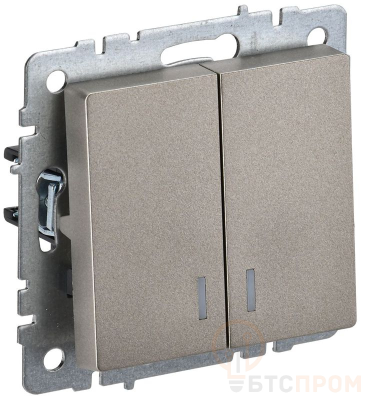 Выключатель 2-кл. СП BRITE ВС10-2-1-БрШ 10А с индик. механизм шампань IEK BR-V20-1-10-K37 фото в каталоге от BTSprom.by