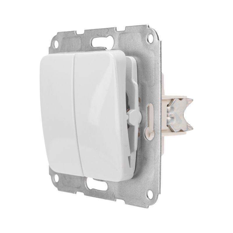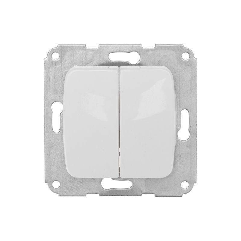 Устройство рассчитано на номинальный ток 10А и предназначено для установки в стандартный подрозетник. С его помощью можно независимо управлять двумя группами светильников или другими электроприборами, что обеспечивает гибкость в создании сценариев освещения. Модель отличается долговечностью механизма и четкостью срабатывания.