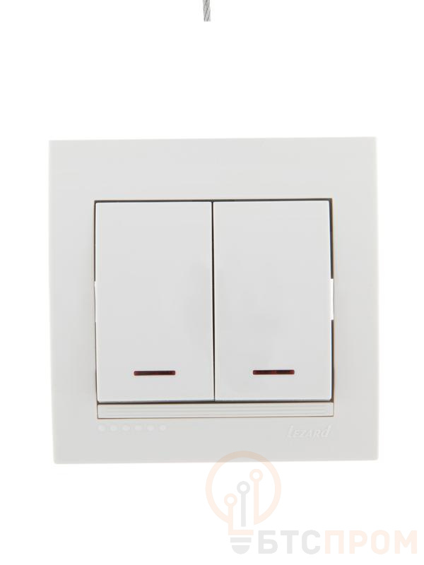 Выключатель 2-кл. СП Deriy 10А с подсветкой бел. LEZARD 702-0202-112 фото в каталоге от BTSprom.by