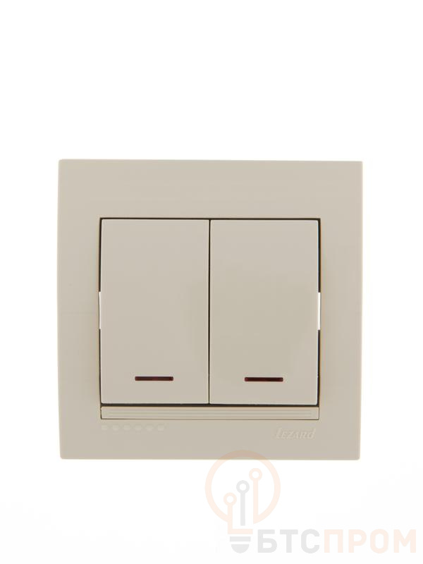Выключатель 2-кл. СП Deriy 10А с подсветкой крем. LEZARD 702-0303-112 фото в каталоге от BTSprom.by