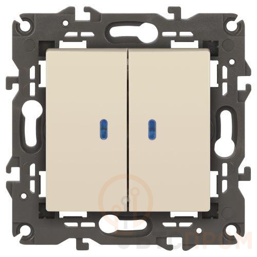Выключатель 2-клавишный подсветка Эра Elegance слоновая кость 14-1105-02. Оснащён автоматическими клеммами для надёжной фиксации жил кабеля в механизме. Рамки приобретаются отдельно.
