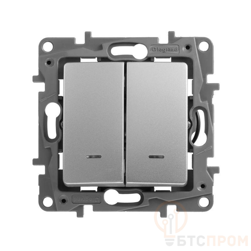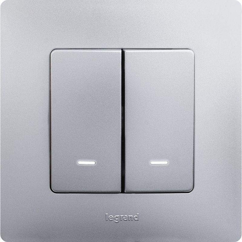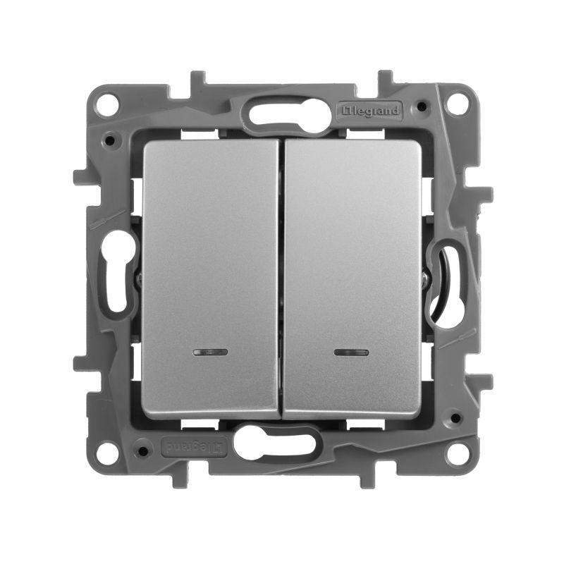 Выключатель с подсветкой двухклавишный ETIKA для скрытого монтажа, номинальный ток 10 А. Предназначен для управления двумя электрическими цепями.