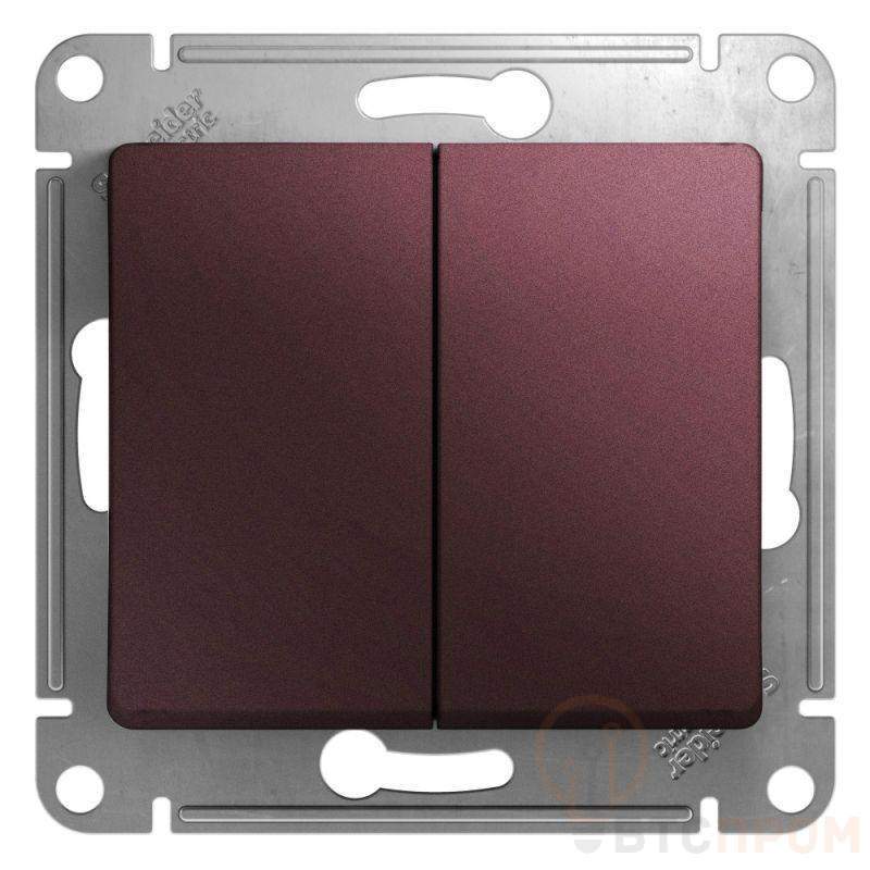 Механизм Systeme Electric (ранее Schneider Electric) серии Glossa (цвет баклажановый) выключателя 2-клавишного подходит для сетей 250 В, на ток 10 А. - Двухклавишный выключатель позволяет управлять двумя источниками света с одной точки. - Выполнен из материала PС+ASA, стойкого к УФ-излучению и появлению царапин. - Эргономичные клеммы расположены в два ряда: сверху и снизу.