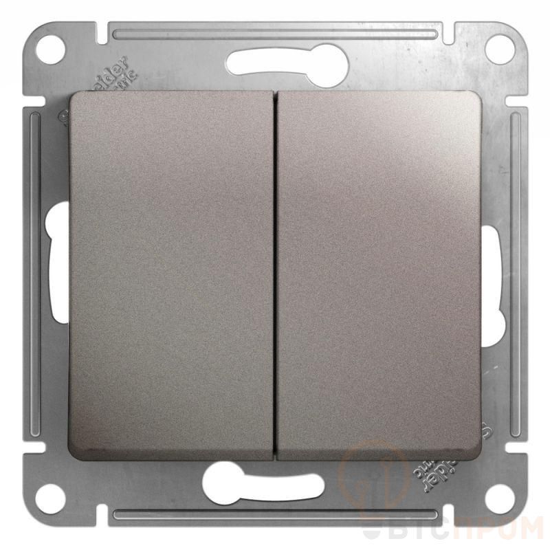Механизм Systeme Electric (ранее Schneider Electric) серии Glossa (цвет платина) выключателя 2-клавишного подходит для сетей 250 В, на ток 10 А. - Двухклавишный выключатель позволяет управлять двумя источниками света с одной точки. - Выполнен из материала PС+ASA, стойкого к УФ-излучению и появлению царапин. - Эргономичные клеммы расположены в два ряда: сверху и снизу.