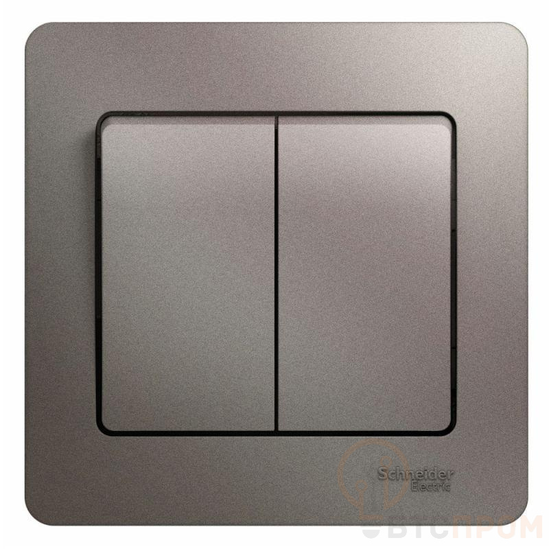 Выключатель Systeme Electric (ранее Schneider Electric) серии Glossa (в сборе, цвет платина) двухклавишный подходит для сетей 250 В, на ток 10 А. - Двухклавишный выключатель позволяет управлять двумя источниками света с одной точки. - Выполнен из материала PС+ASA, стойкого к УФ-излучению и появлению царапин. - Эргономичные клеммы расположены в два ряда: сверху и снизу.