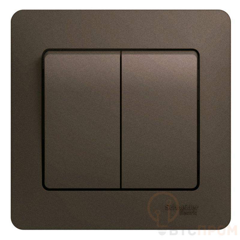 Выключатель Systeme Electric (ранее Schneider Electric) серии Glossa (в сборе, цвет шоколад) двухклавишный подходит для сетей 250 В, на ток 10 А. - Двухклавишный выключатель позволяет управлять двумя источниками света с одной точки. - Выполнен из материала PС+ASA, стойкого к УФ-излучению и появлению царапин. - Эргономичные клеммы расположены в два ряда: сверху и снизу.