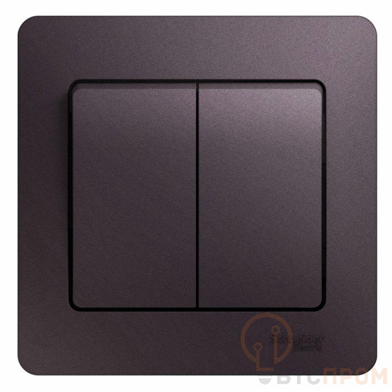 Выключатель Glossa (в сборе, цвет сиреневый туман) двухклавишный подходит для сетей 250 В, на ток 10 А. - Двухклавишный выключатель позволяет управлять двумя источниками света с одной точки. - Выполнен из материала PС+ASA, стойкого к УФ-излучению и появлению царапин. - Эргономичные клеммы расположены в два ряда: сверху и снизу.