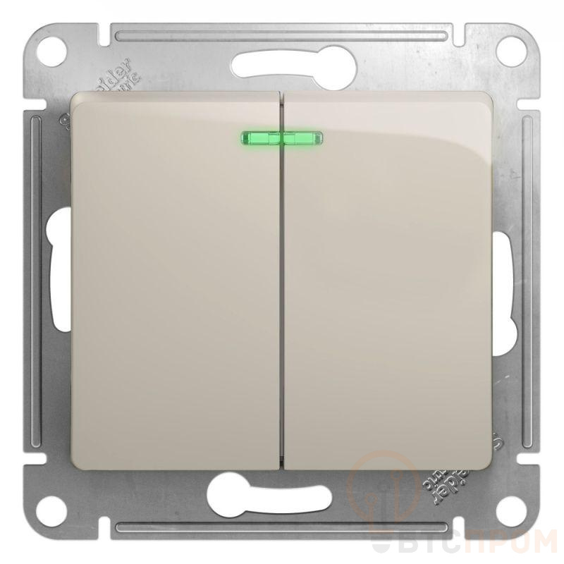 Механизм Systeme Electric (ранее Schneider Electric) серии Glossa (цвет молочный) выключателя 2-клавишного c подсветкой подходит для сетей 250 В, на ток 10 А. - Благодаря современной светодиодной подсветке зеленого цвета изделие легко найти в темноте. - Двухклавишный выключатель позволяет управлять двумя источниками света с одной точки. - Выполнен из материала PС+ASA, стойкого к УФ-излучению и появлению царапин. - Эргономичные клеммы расположены в два ряда: сверху и снизу.