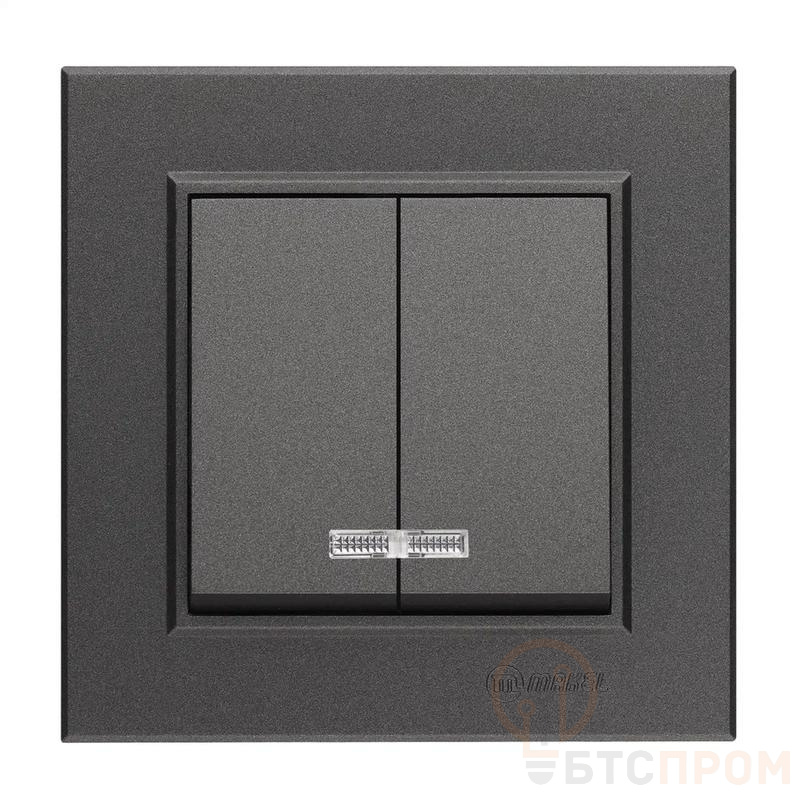 выключатель 2-клав. с подсветкой karea line star дым. металлик makel 86050023 от BTSprom.by