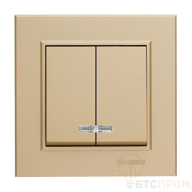 Выключатель 2-кл. СП Karea 10А IP20 латунь с подсветкой Makel 56057023 фото в каталоге от BTSprom.by