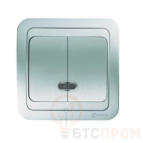 –Выключатель 2-кл. СП Mimoza N 10А IP20 с подсветкой серебр./серебр. Makel 26623