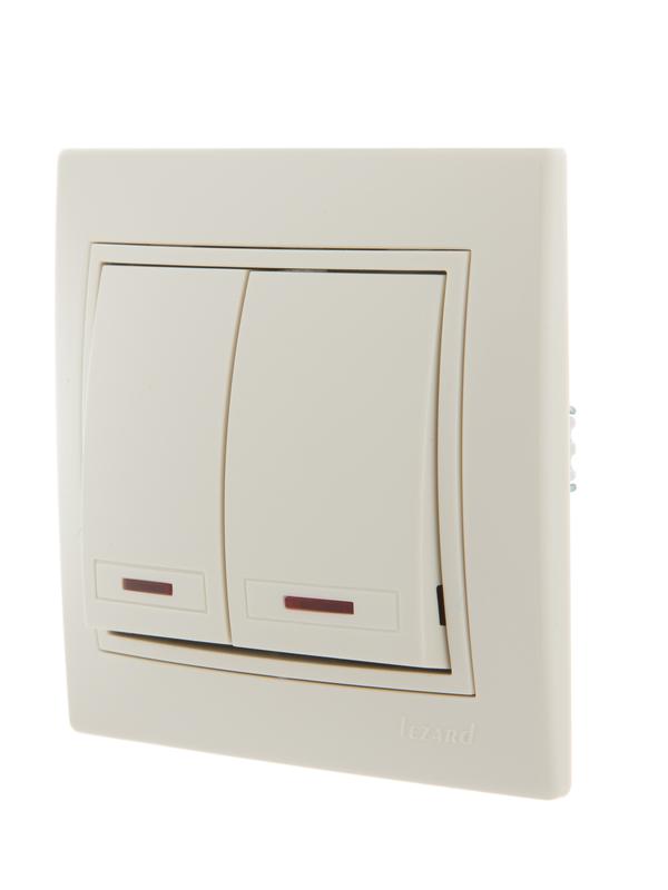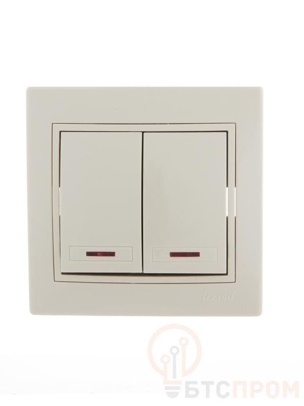 Выключатель 2-кл. СП Mira 10А IP20 с подсветкой со вставкой крем. LEZARD 701-0303-112 фото в каталоге от BTSprom.by